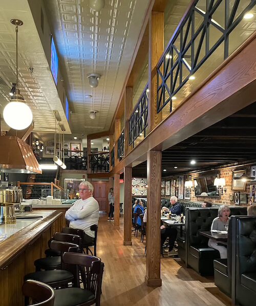 Given that Pochron is the chef I was expecting good things from Washington Street Pub. But before I talk about the food, I think it worth mentioning the new interior design. Frankly, the old décor, though having a pub charm, was rather ordinary. I don’t know what their intent was, but to me the new design has a modernized belle epoque vibe. I especially like the mezzanine dining area. In fact, it reminds me of a restaurant I used to frequent in Brussels, La Quincaillerie (hardware store). I did take note of subtle hints of duck hunting incorporated into the design, which I presume is a homage to the old pub.