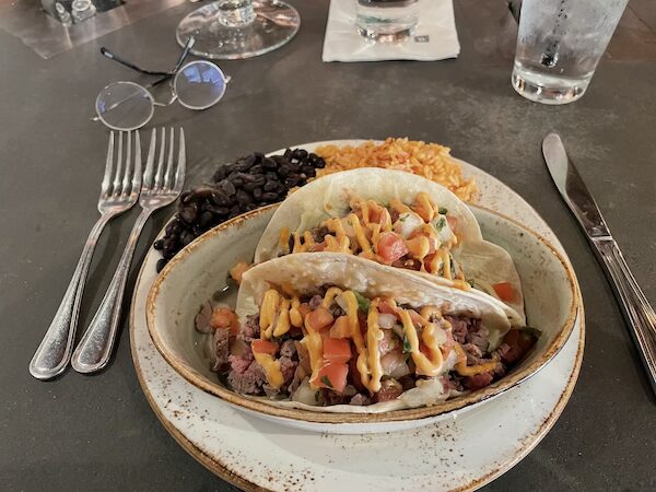 Though I missed out on the margarita, the soft-shell steak taco was every bit as good as I remembered. It is made with grilled filet, shredded veggies, Mexican cheese, and topped with pico de gallo and chipotle. No matter how many times I order this dish, I savor every bight. It is the best taco I have ever eaten, including tacos I have eaten in Mexico.