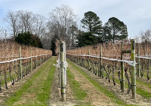 Salted Vines is owned by Adrian Mobilia, who hails from a long line of vintners in Erie, Pennsylvania. Adrian had previously owned Fenwick Wine Cellars, which closed in 2015. The Mobilias purchased 26 acres (10.5 hectares) of farmland in Frankford, Delaware and soon after closing Fenwick Wines they began construction of a production facility and tasting room for their new winery. While the buildings were under construction the Mobilias planted their first grapes, Merlot and Cabernet Sauvignon, in April of 2016. Since the original plantings they have also added rows of Malbec and Vermentino (a southern Italian white grape). In addition to their locally grown grapes, they also import grapes from their Erie, Pennsylvania vineyard and from California.