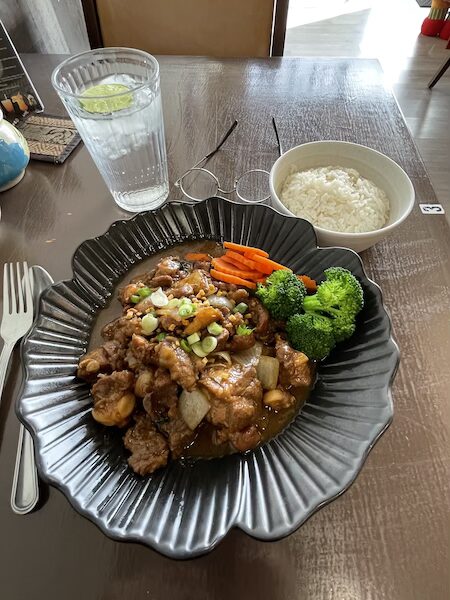 Teera Thai is a self-proclaimed casual restaurant, so I was pleasantly surprised to see an exquisitely presented dish. The food was beautifully arranged in a black scalloped plate. This was far from casual, it was elegant. It is obvious that the chef takes pride in their work. In many Asian cuisines, presentation is as important as the food itself. The dish screamed, “I am proud of this food.” With my anticipation raised, I took a bite. The dish had that delicate fragrantly aromatic quality that I appreciate in Thai cuisine. It was perfectly cooked and boldly flavorful. It seemed like a lot of food when the waitress brought it out. But I enjoyed it so much I ate the entire dish, which is rare for me. Also, in many Asian cultures it is rude to eat everything on the plate, so I almost always leave something in Asian restaurants.
